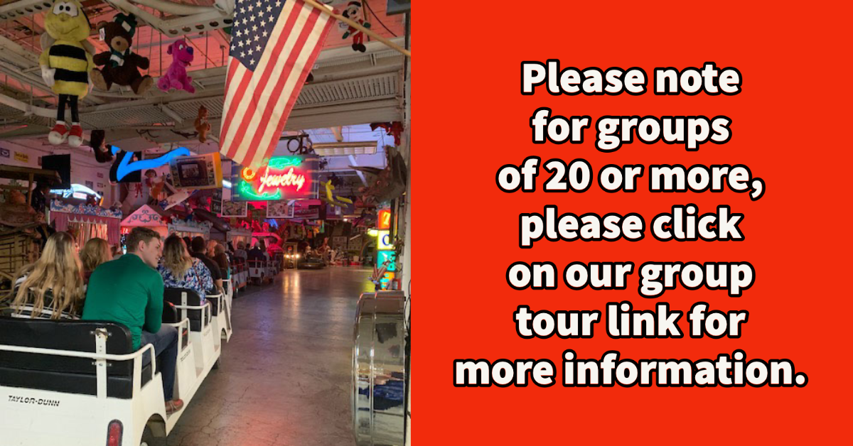 You will be entertained by our guided tram ride that meanders through our 75,000 square foot Toy Box. You can't even begin to imagine the oddities, curiosities and priceless antiques you will see along the way!